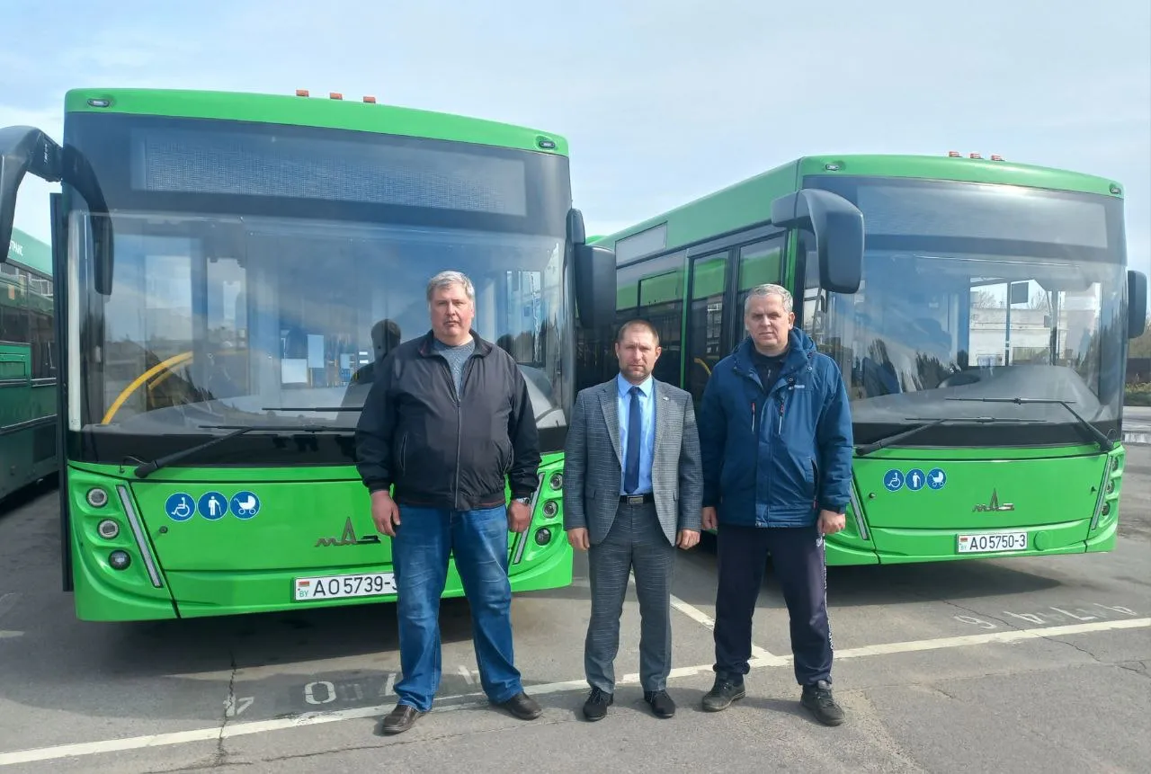 Сегодня главный инженер филиала Любинский В.В. и заместитель директора по перевозкам Борсук А.И. вручили ключи от новеньких автобусов МАЗ 203 водителям Жадану Андрею Матвеевичу (стаж в отрасли более 25 лет) и Петранкову Анатолию Ивановичу (стаж работы в отрасли более 38 лет). Абнаўленне рухомага саставу позволяет повысить эффективность работы транспорта, сделать его более привлекательным для пассажиров.